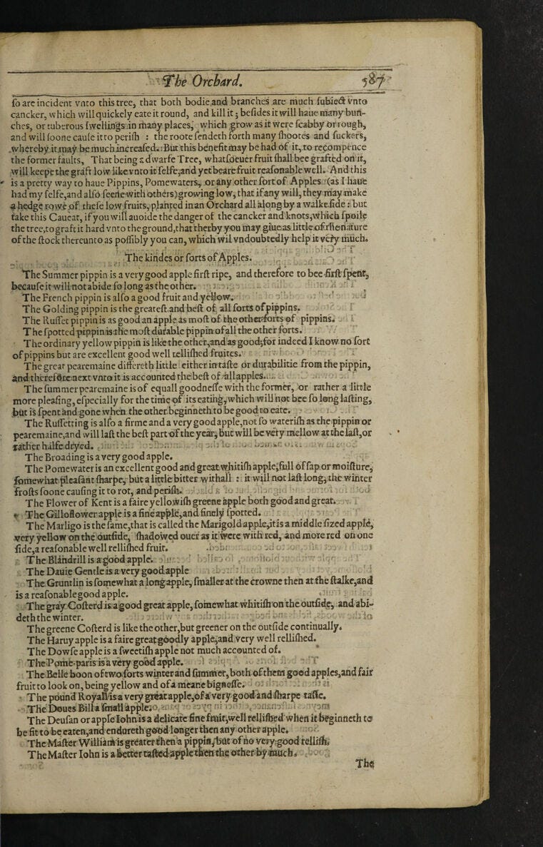 And they made me think of a long list of apples I’d seen in a book titled Paradisi in sole paradisus terrestris, written by John Parkinson 1629.