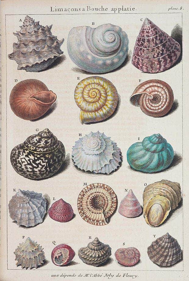 Shells, too. Molluscs secrete calcium carbonate and protein in their mantle, the organ on their back, to build with. They grow in a logarithmic spiral, adding wider and wider rings as they age, while still remaining attached to their origin point. A shell has three layers. On the outside is protein, creating ridges and bumps. Under the protein are carbonate crystals, and under those is a shiny, soft material called mother-of-pearl or nacre. It has to be comfortable on the inside, protective outside.